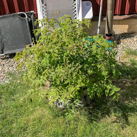 För ett antal år sedan grävde jag upp en mycket liten planta av plymspirea (Aruncus dioicus) från en plats i bostadsrättsföreningens bakre del dit de hade spritt sig, bakom ett förvaringsskjul. Jag planterade den hos mig nedanför mitt köksfönster.